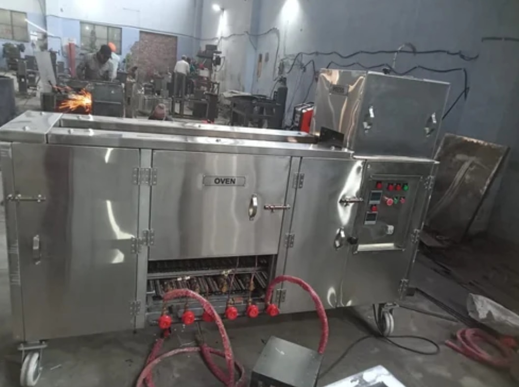 Capacity: 1000 Chapatis Per Hour Design Type: Roller Automation Grade: Automatic Brand: Style Craft Frequency: 50-60 Hz Dimension: 5x 2.4 x 4.5 Feet Usage/Application: Canteen mess or hospital Weight Of Machine: 280 - 300 Kg Production Capacity: 800 Chapati per Hour Minimum Order Quantity: 1 Unit Style Craft Press Type Semi Automatic Chapati Making Machine Semi Automatic Chapati Making Machine With Three tier baking OvenCapacity : 1000 Chapati/Hr.Size of Chapati : 4” to 7”Thickness of Chapati : 1.3 mm to 3 mmColour : Light BrownAppearance : Soft with Puffed LayerBody : Stainless SteelWeight of Chapati : 25-55 Gr.Size of Machine : 7’ x 2.5’ x 4.5’Power required : Approx 4 Kw.Gas Consumption : 3 Kg. approxWeight of Machine : 220Kg. (approx)Operator : 1 unskilledMotor : 1/2 HP Single Phase